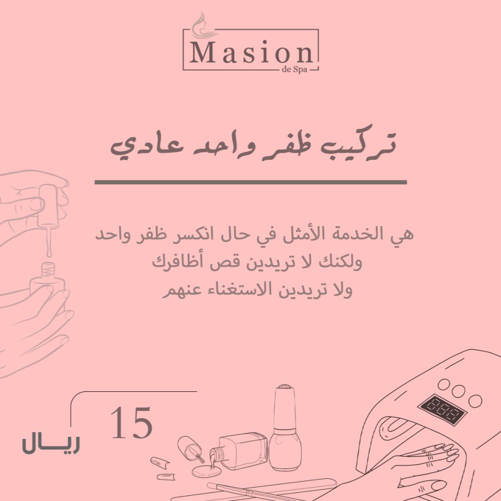احجزي من قسم العناية بالأيدي والأقدام تركيب ظفر صناعي عادي على ظفر واحد من ميزون سبا هو طريقة بسيطة وسريعة لإصلاح الظفر المكسور أو لإضافة لمسة جمالية على مظهر اليدين بسعر رائع.