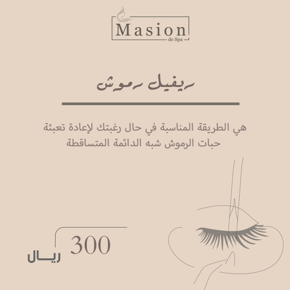 في قسم الرموش والحواجب احصلي على خدمة ريفيل الرموش لتجديد إطلالتك وإزالة الرموش شبه الدائمة بأمان واحترافية عالية، باستخدام مواد آمنة للحفاظ على صحة عينيك ورموشك الطبيعية.